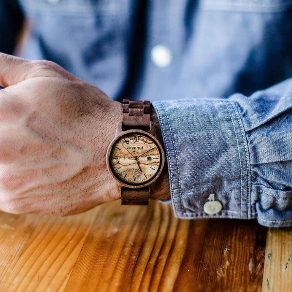 • Case and band made from real wood