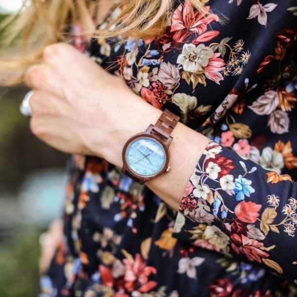 • Case and band made from real wood