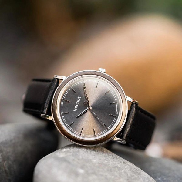 The Bay Ebony Grey Black Leather men's watch features a minimalistic black sunray dial and a perfectly black leather band, this timepiece looks effortlessly elegant. Dressed up or dressed down, this beautiful watch will stand out in any crowd.