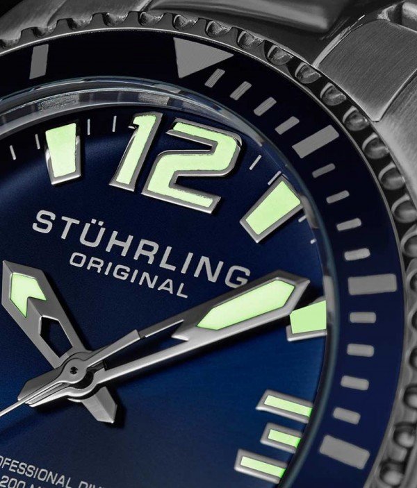 Luminous sword style hands and Arabic numerals bring easy readability to a classic dive style.