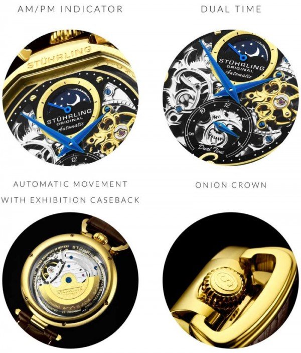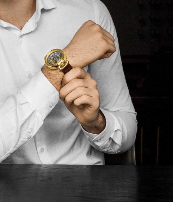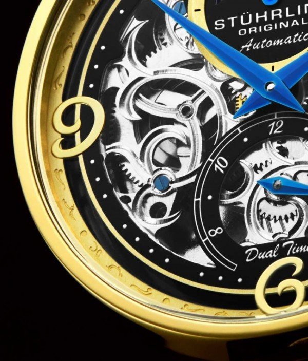 Packed into a bold skeleton dial and exhibition case back, the muscle of a fully dual-time automatic movement shines in the Modena 889.