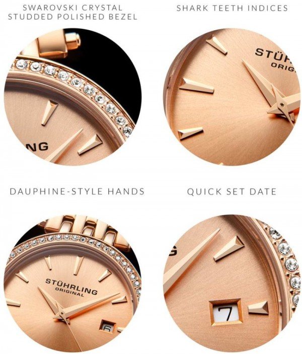 Stainless Steel Gold Tone Case on Link Bracelet, Gold Tone Dial, Swarovski Crystal Studded Polished Bezel, with Gold Tone Accents