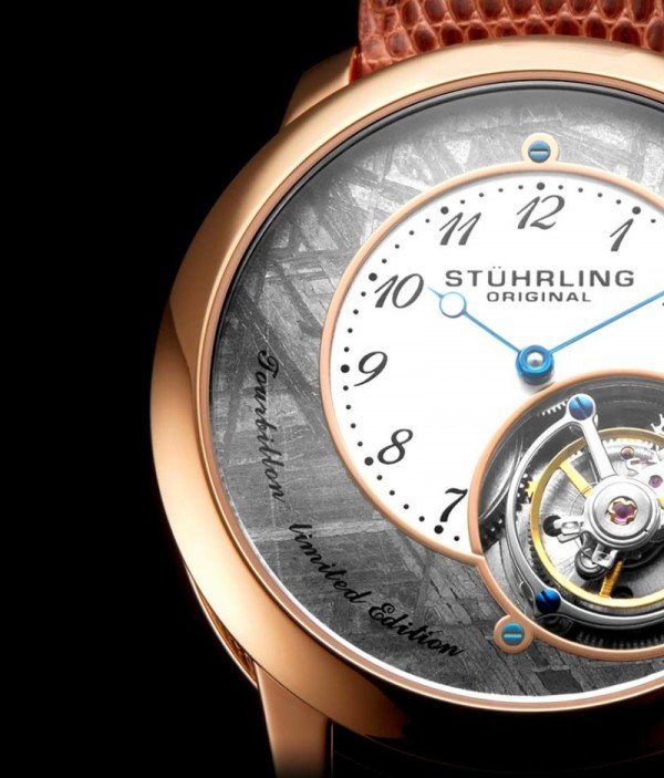 Men’s Mechanical Tourbillon Watch, Rose Gold Stainless Steel Case, Grey Meteorite Dial, Cocoa Brown Genuine Lizard Strap