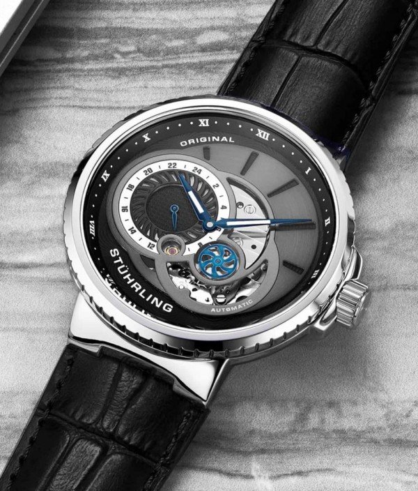 Exhibition case back showcasing Stührling’s masterful watchmaking