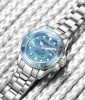 A stunning Mother of Pearl dial collects luminous baton-style hands and indices into one easy-to-read presentation, completed with a coin edge bezel.