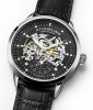 The skeletonized dial unfolds layers of style with its stunning engraved scrollwork and 22-jewel movement.