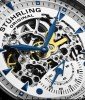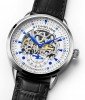 The skeletonized dial unfolds layers of style with its stunning engraved scrollwork and 22-jewel movement.