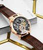 Fully automatic movement with exhibition caseback and onion crown with a guard at 12 o’clock keeps your time powered every wear.