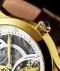It’s impossible to take your eyes off the Radiant 925’s alluringly intricate second time-zone subdial, AM/PM Indicator, and striking tinted glass over the skeletonized dial.