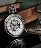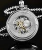 Stainless Steel Pocket Watch on Silver Tone Chain, White Dial, with Black Accents