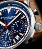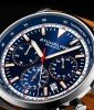 Men’s Chrono Silver Case, Silver Bezel, Silver Dial with Blue and Black Colored Accents, Luminous Silver Hands and Markers, Grey Genuine Leather Strap Watch