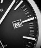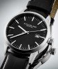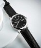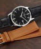 Stainless Steel Case on Black Alligator Embossed Genuine Leather Interchangeable Strap with Additional Tan Genuine Leather Strap, Black Dial, with Silver and White Accents
