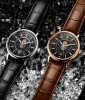 The stunning illustrated Day/Night dial at the center of the Duet pairs perfectly with elegant leaf-style hands and stick indices, creating a dramatic display that dazzles in both day and night.