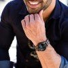 The Horizon Ebony Black Marble men's watch features a black marble dial, rich ebony case and matching ebony wood band reinforced by gunmetal stainless steel. Minimalist stone dial unique to its kind and band with sleek interlinking pattern. Lightweight for everyday wear.