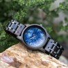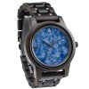 The Horizon Ebony Blue Marble men's watch features a blue marble dial, rich ebony case and matching ebony wood band reinforced by gunmetal stainless steel. Minimalist stone dial unique to its kind and band with sleek interlinking pattern. Lightweight for everyday wear.