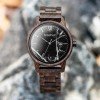 The Odyssey Black Marble Ebony men's watch is made of natural ebony wood. The dial, which includes a date indicator, is cut from the finest Italian black marble and detailed with sliver hands, markings and Roman numerals at 6 and 12 o'clock.