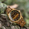 For the man at ease anywhere in the world, wherever they may be going or wherever they’ve arrived. The Sojourn Collection watch is an effortless everyday watch for the worldly explorers. Constructed with an all-wood case, 5-link wood band, a real marble dial detailed with a stainless steel ring and combined with elegant Roman numerals. Textured and balanced, like the wearer of this timepiece. Sojourn Tiger Eye Zebrawood mens watch is made with all natural zebrawood and real tiger eye marble.