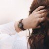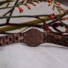 The Viola watch from the FLORA Collection owes its name to be as unique as the sight of a black moon viola flower. Natural walnut wood has been hand-crafted to its finest slenderness. The Viola dial is made of a brushed black stainless-steel that has a shiny touch and rose gold colored details.