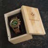 The CHRONUS Collection features a classic SEIKO VD54 chronograph movement, scratch resistant sapphire coated glass and stainless steel enforced strap links. Made from American Walnut Wood and handcrafted to perfection. All featuring a 42mm diameter case, the CHRONUS Collection is now available in 4 editions: Emerald Gold, Sapphire Silver, Axinite Black and Walnut Gold.