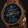 The CLASSIC Collection rethinks the aesthetic of a WoodWatch in a sophisticated way. The slim cases give a classy impression while featuring a unique a moonphase movement and two extra subdials featuring a week and month display. The CLASSIC Sailor is made of East African Kosso Wood and features a blue dial and golden-colored details.